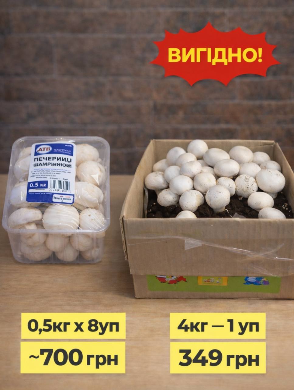 🔹 Смачні та корисні гриби - свіжі печериці з домашньої грядки багаті на білки та мікроелементи;